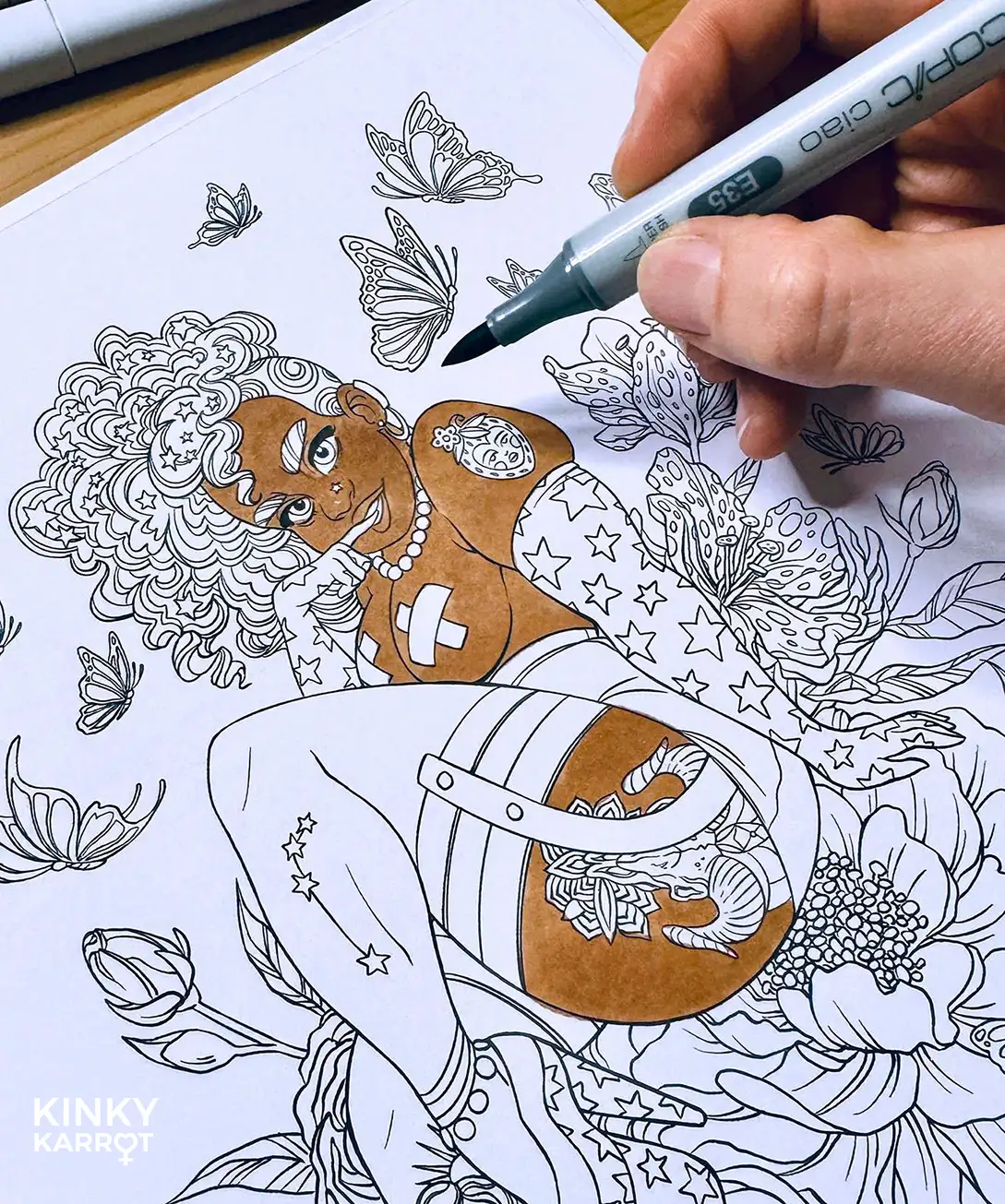 The Kinky Karrot Coloring Book – In Bloom invites you into a vibrant world where sensuality and nature intertwine.