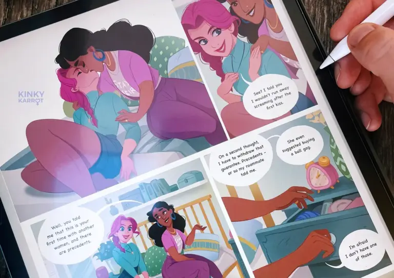 Creating a sex-positive graphic novel is, frankly, an act of rebellion. Platforms still shy away from terms like kink or vulva. But we draw anyway – because shame can’t survive where stories are told with care, humor, and honesty.